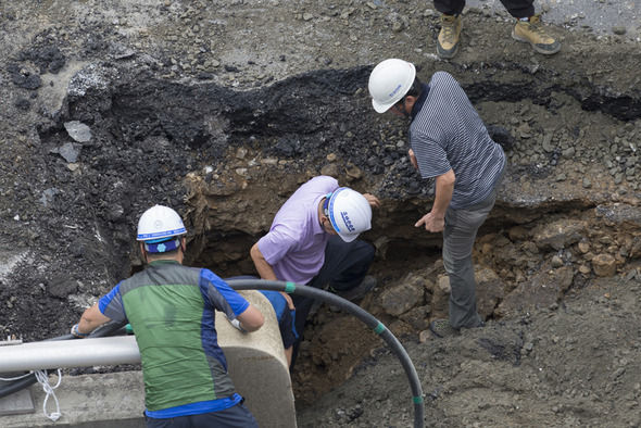 横1m、縦1.5m、深さ3m大のシンクホールが出現した。
